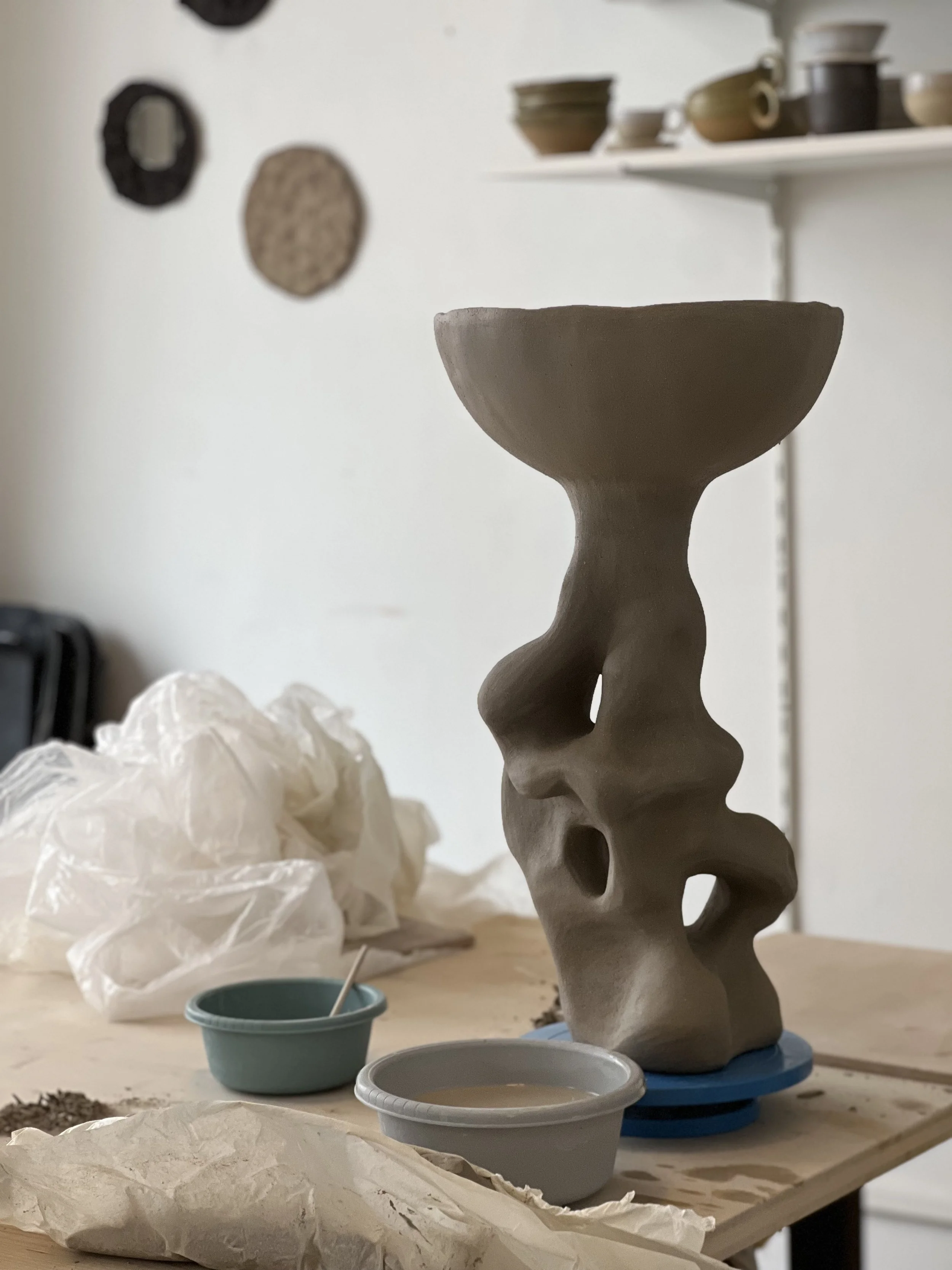 Nourrie par un parcours dans la restauration – pâtisserie, café de spécialité, torréfaction – et issue d’une lignée de céramistes, je crée aujourd’hui des pièces artisanales sur mesure à destination des professionnels de la table.